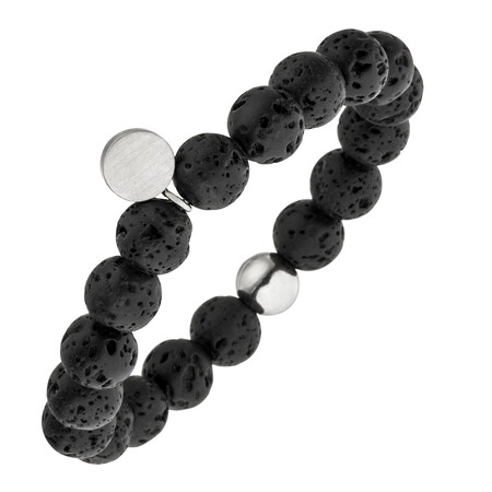 The stainless steel ball and the small pendant with a 1200 gauss strong neodymium magnet create an effective contrast to the black lava beads and make this bracelet a real eye-catcher.