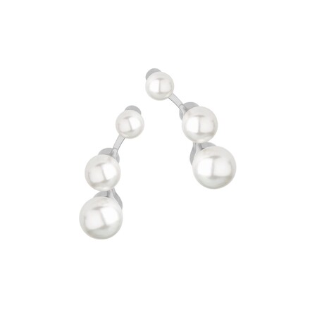 De tre vita konstgjorda pärlorna i de här örhängena är ordnade efter storlek och har ett delikat, oemotståndligt skimmer. En kraftfull neodymmagnet är integrerad i det högkvalitativa rostfria stålet på baksidan och vilar direkt på örsnibben när den bärs.