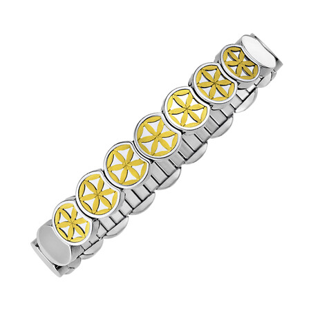 Med det här flexibla magnetarmbandet är det förtrollande och emblematiska motivet på toppen särskilt markerat med en gyllene yta. Den resulterande dubbelfärgskiktet gör att detta armband kan kombineras med alla smycken gjorda av guld, silver och rostfritt stål.